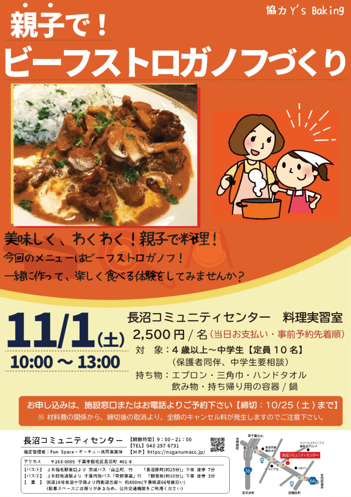 イベント情報 , 2025年10月03日親子で作る、ビーフストロガノフづくり教室を開催いたします!