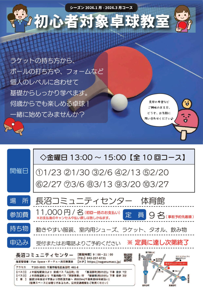 イベント情報 , 2026年01月11日定期講座、初心者対象★卓球教室の参加者を募集いたします。