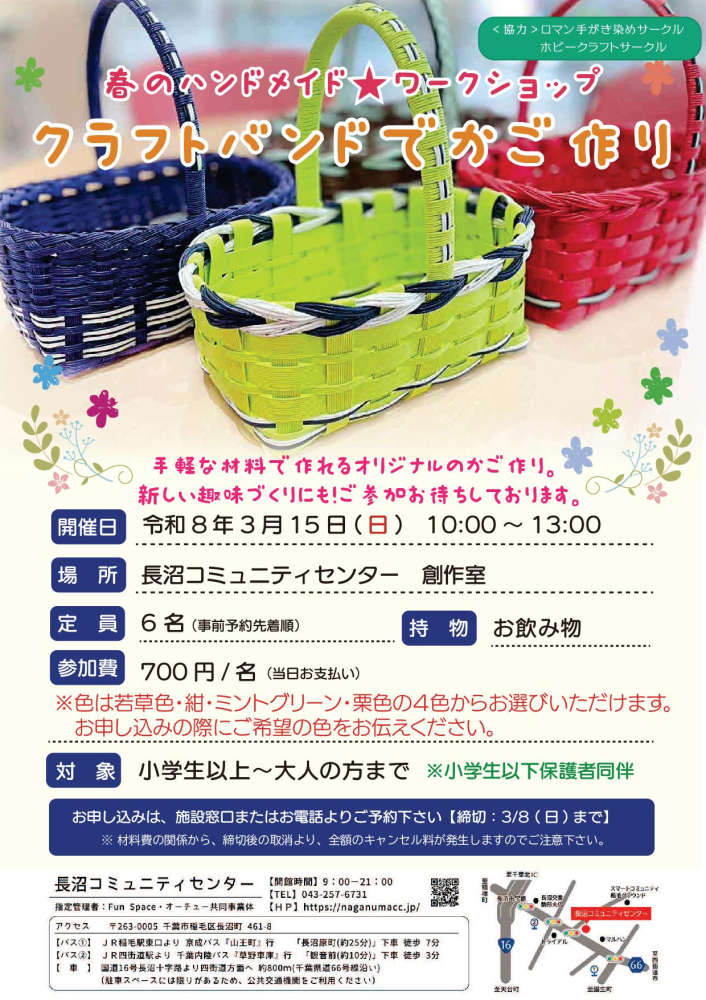 イベント情報 , 2026年01月14日春のハンドメイドワークショップ、クラフトバンドでかご作りを開催します。
