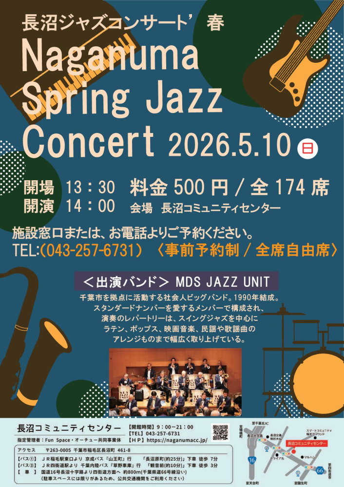 イベント情報 , 2026年03月01日千葉市を拠点に活動する社会人ビッグバンド「MDS JAZZ UNIT」の皆さまによるジャズコンサートを開催します。