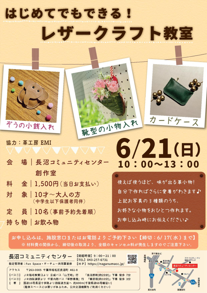 イベント情報 , 2026年04月16日はじめてでもできる、レザークラフト教室を開催いたします。